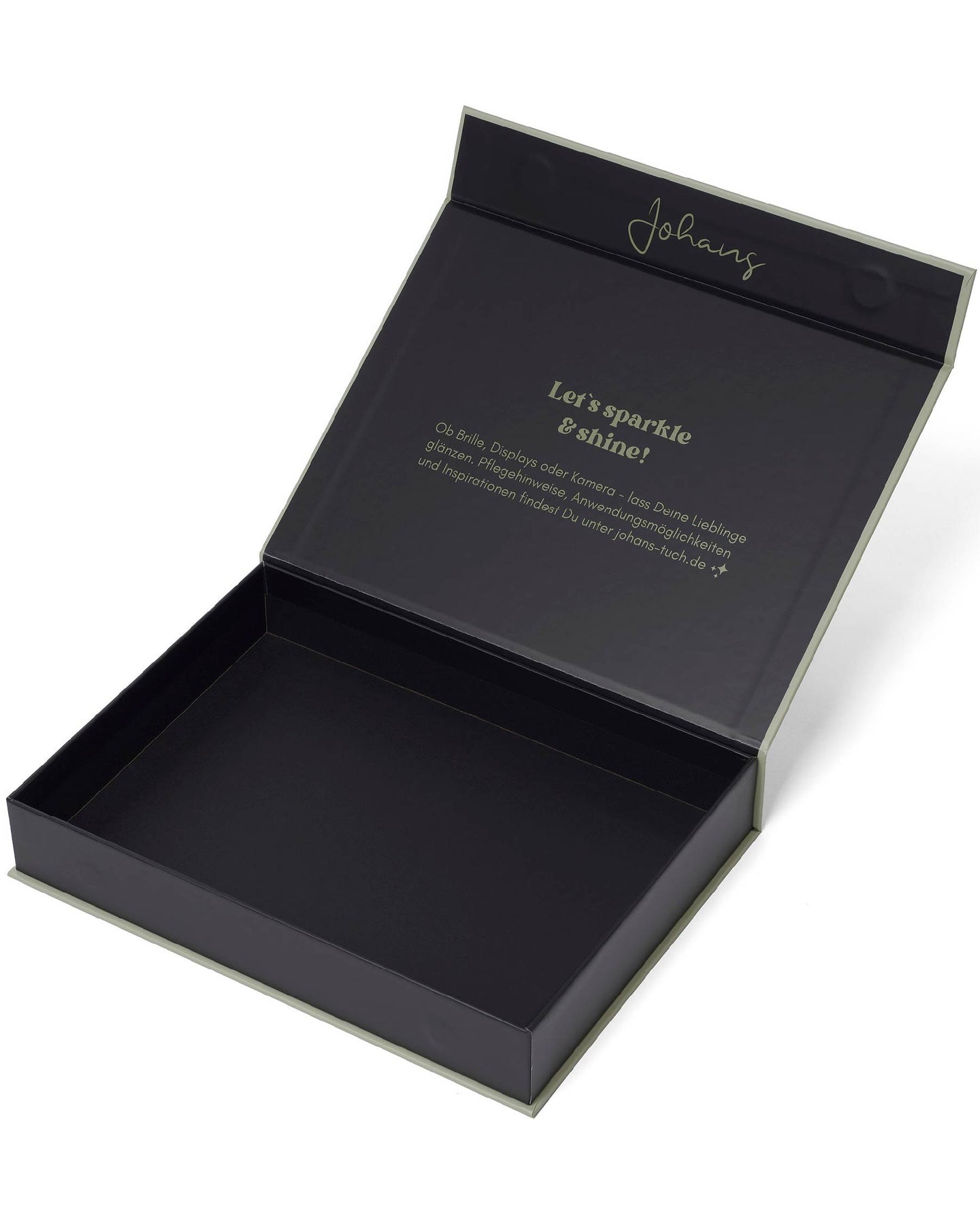 Stell Dir Deine ganz persönliche Geschenkbox zusammen: Wähle aus 40 einzigartigen Designs 3 Johans Tücher und kombiniere sie mit einem Puffy Bag in Deiner Lieblingsfarbe. Abgerundet wird das Set durch einen sanften Reinigungsschaum (50 ml) – verpackt in einer edlen Geschenkbox mit Magnetverschluss.